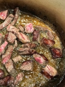 I’ve made a version of this for years and it is high on the list of family favorites, especially for my teenager. The recipe is based on Pioneer Woman’s Sunday Night Stew. As far as tips and tricks, salt and taste as you go, and commit to searing the beef in the browning step — go for dark brown, not gray.