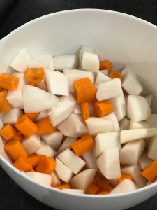 After 2 hours, add the carrots and turnips to the pot. Stir to combine, put the lid on the pot, and cook on low for 30-45 minutes or until the vegetables are tender.
