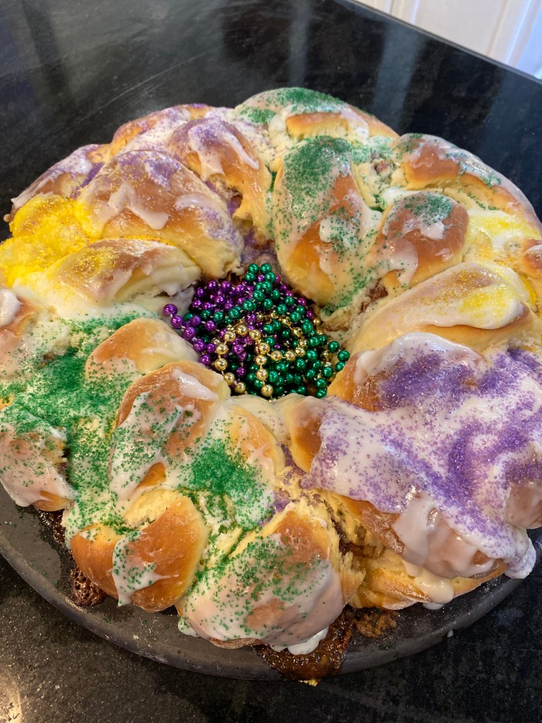• I make king cake, because it’s also Carnival season… and “they can’t cancel King Cake!”