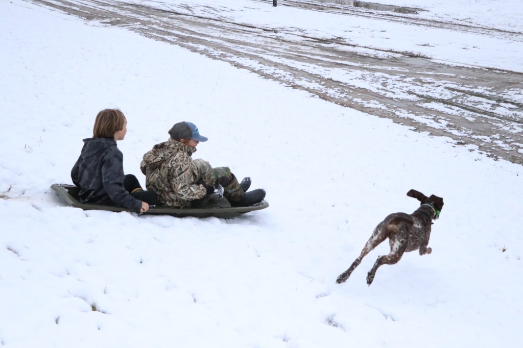 • Some use crawfish trays and garbage can lids… but my kids have always had a sled because my father-in-law used to travel to Wisconsin for work, so my husband always grew up with a real sled, and yes, it’s worth the storage space for the once in every five years we use it