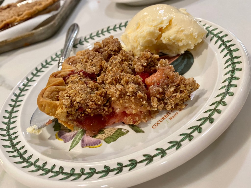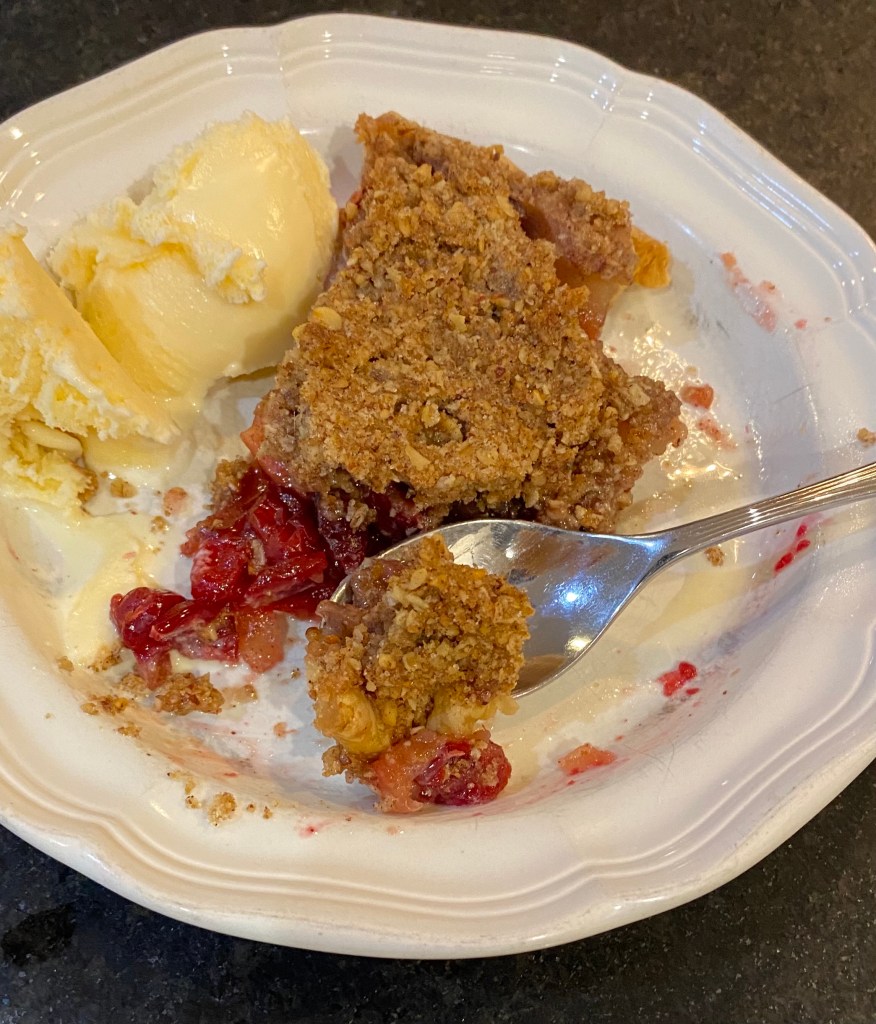 - Bake at 350 for 45 minutes, until the streusel is browned and the juices are bubbling.