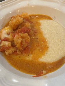 Spoon the grits into bowls and top with the shrimp. Garnish with crisped bacon, if desired. (This is not pictured, since my kids can smell bacon from a half mile away and had demolished the garnish before the grits were finished). Enjoy!